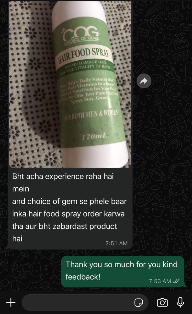 Our Hair Food Spray quality speaks for itself — most of our customers come back to order bundle packs once they see real results. After gaining trust, nobody ever feels the need to return it.